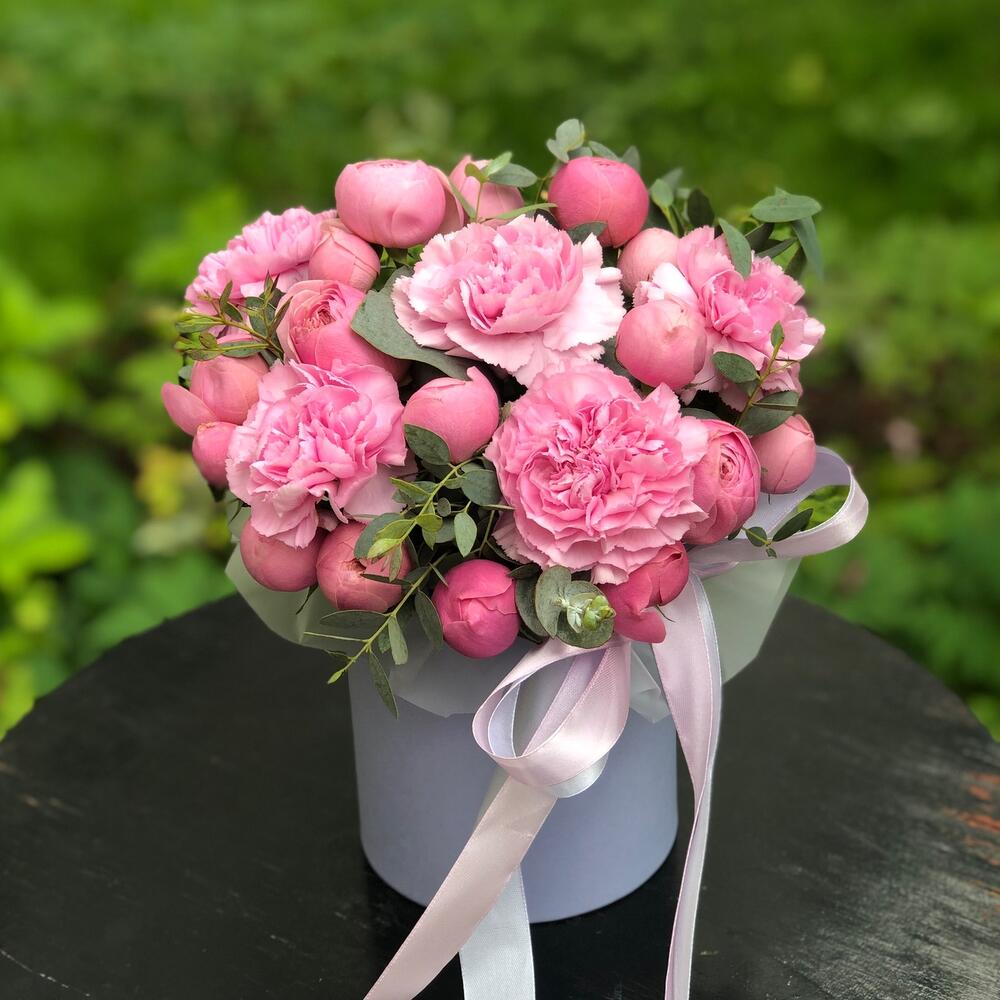 Шикарная коробка из пионовидной розы Сильва Пинк и розовых диантусов. Очаровательная, яркая, притягательная! Влюбляет в себя с первого взгляда!💕🌸